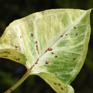 Leaf rust is a fungal disease that attacks garden plants in wet and humid conditions. As the name suggests, leaf rust looks similar to the kind of rust we get on metals. The first signs of rust are white or reddish to orange blister-like swellings on the underside of leaves and stems. Orange or yellow spots or streaks appear on the undersides of the leaves. The symptoms appear primarily on the surfaces of lower leaves. This disease leads to leaf distortion and defoliation.